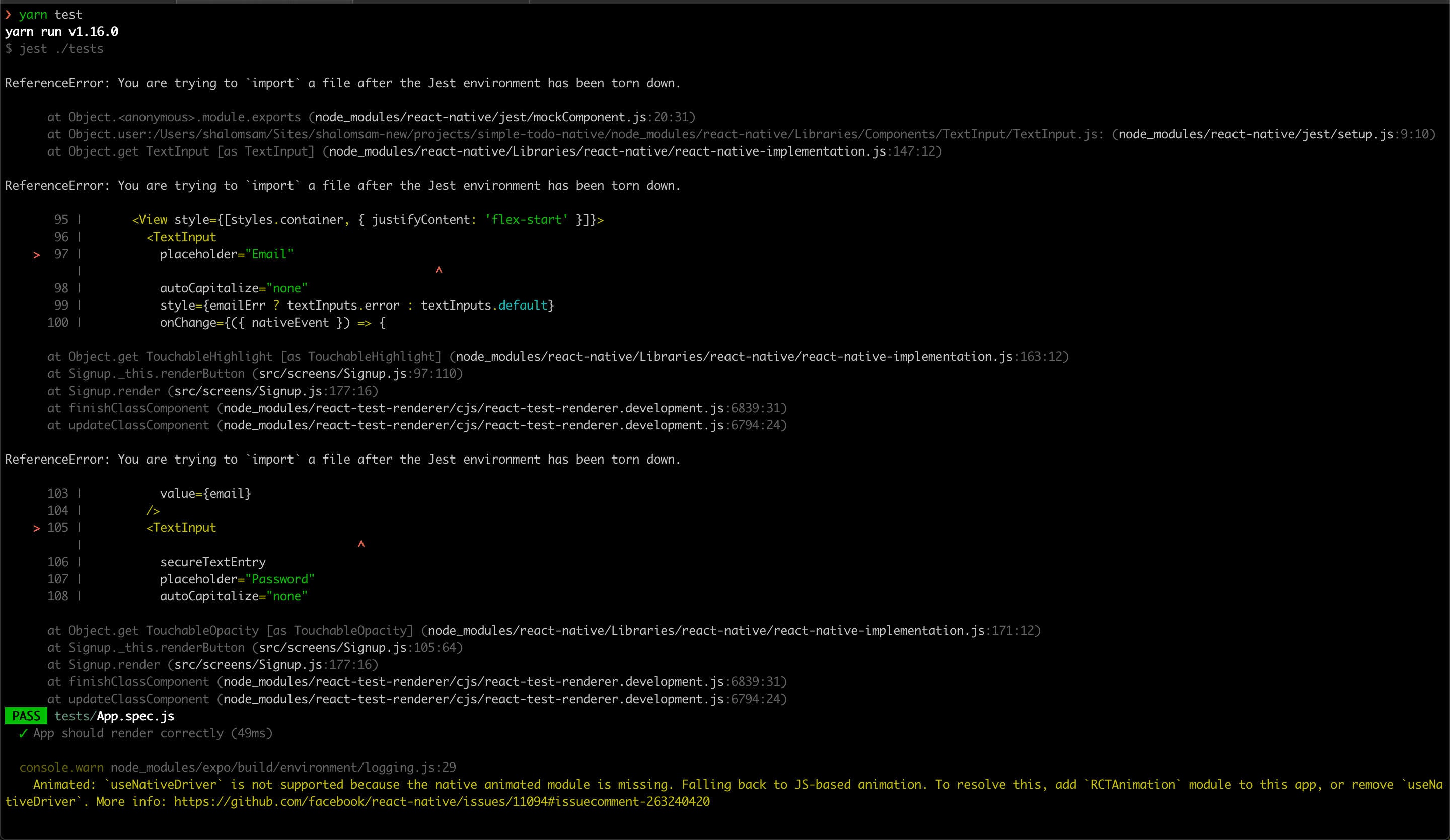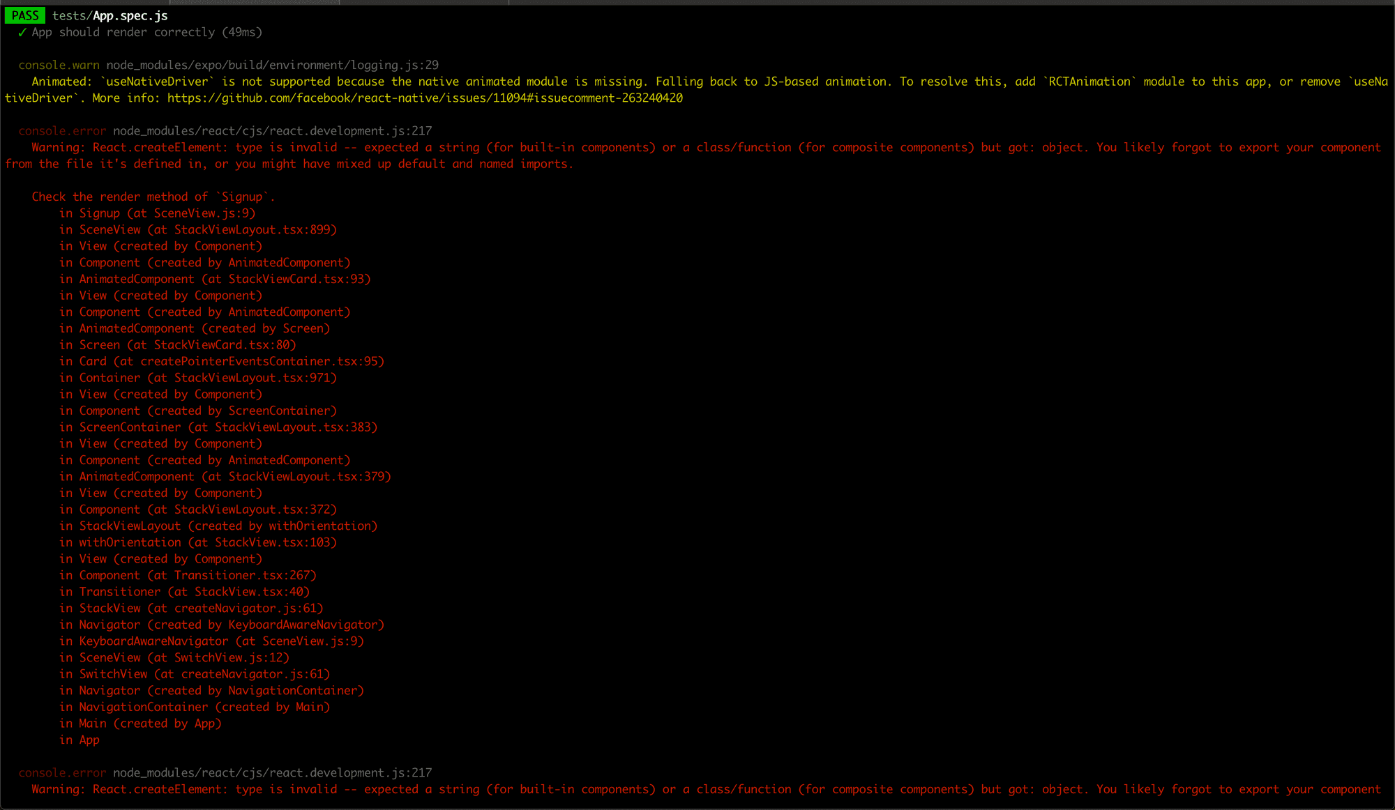 , even though the test may pass, you might see a bunch of errors like the ones you see in the below images: